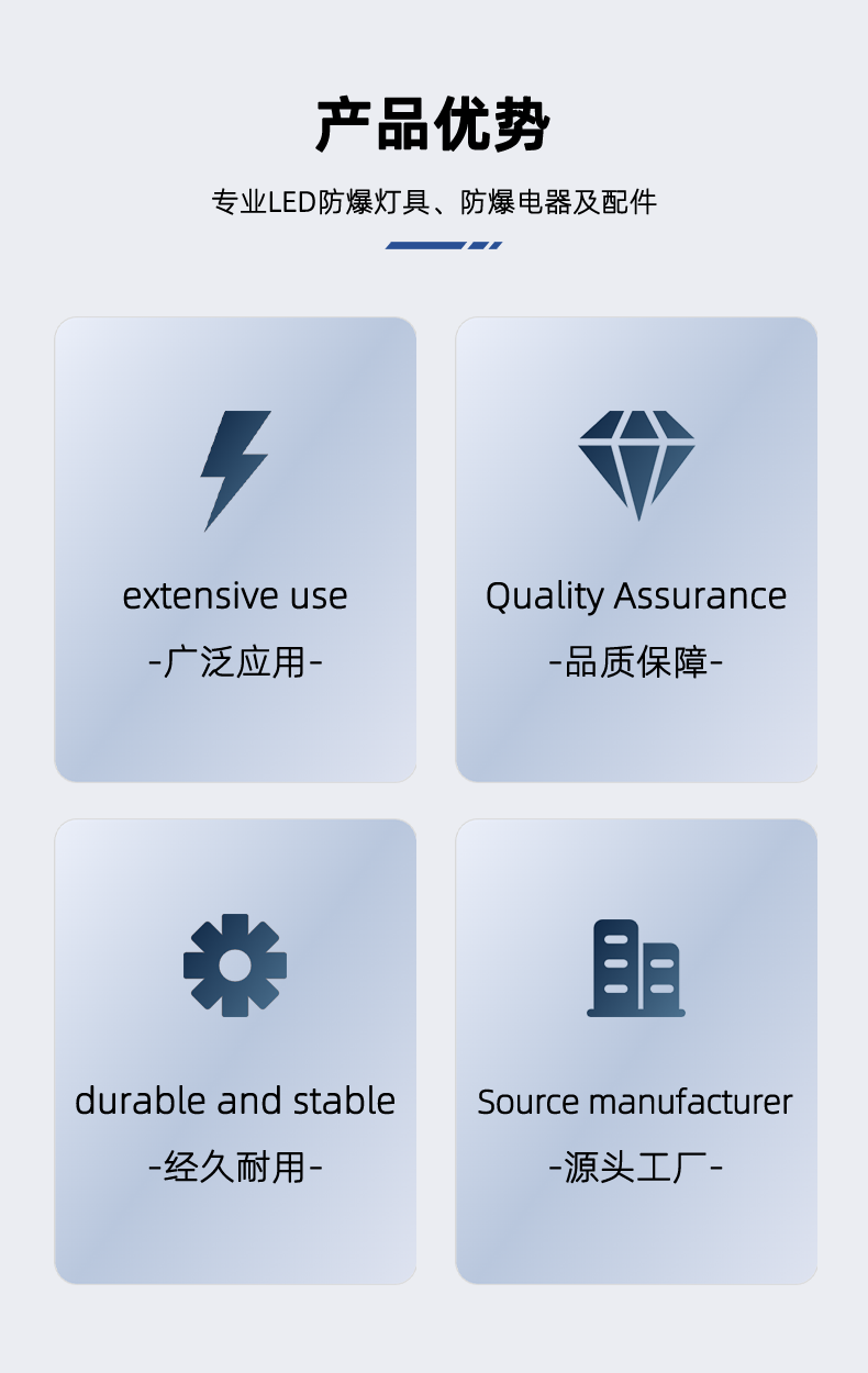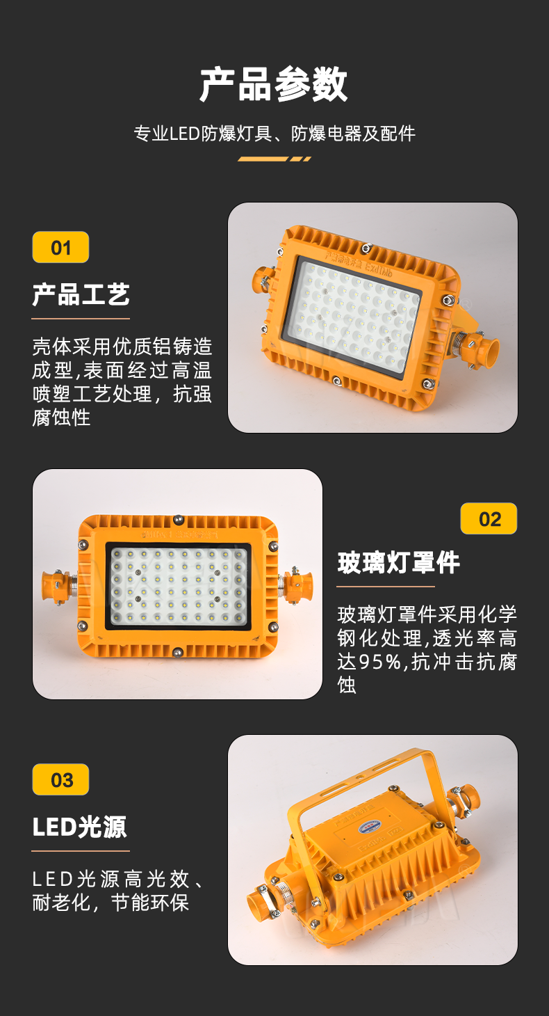 2.钢化玻璃灯罩,反光罩采用镀铬及喷塑工艺